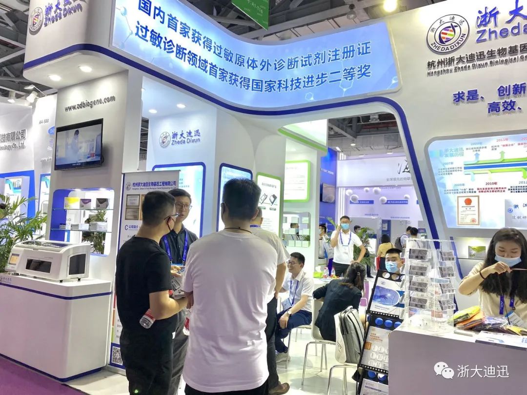 作為國(guó)內(nèi)首家獲得過(guò)敏原體外診斷試劑SFDA注冊(cè)證的生產(chǎn)企業(yè),浙大迪迅專注過(guò)敏診斷十七載,秉承“求是、創(chuàng)新、高效、卓越”理念,為過(guò)敏性疾病患者提供最優(yōu)質(zhì)的過(guò)敏原檢測(cè)服務(wù)。浙大迪迅在本次博覽會(huì)設(shè)立特裝展臺(tái),隆重推出本公司新系列產(chǎn)品--100項(xiàng)食物特異性抗體IgG檢測(cè)試劑盒(蛋白芯片法),受到眾多著名專家學(xué)者和經(jīng)銷商伙伴的強(qiáng)烈關(guān)注,紛紛前來(lái)觀摩學(xué)習(xí),交流經(jīng)驗(yàn)。
