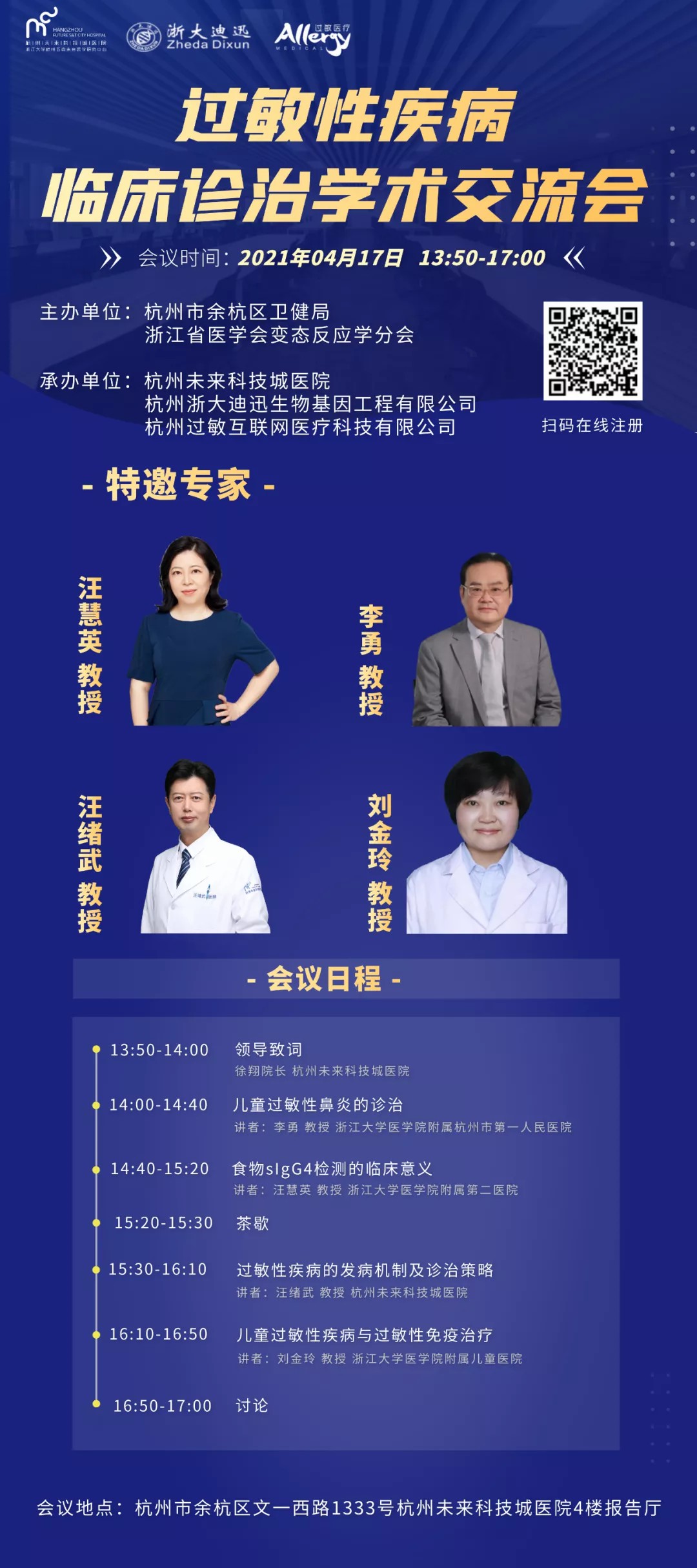 為了更好地促進各醫(yī)療單位過敏性疾病的學(xué)術(shù)交流,推動過敏學(xué)科在周邊各級醫(yī)院的發(fā)展,茲定于2021年4月17日在杭州未來科技城醫(yī)院舉行“過敏性疾病臨床診治培訓(xùn)班”,旨在搭建余杭區(qū)過敏領(lǐng)域醫(yī)護人員的溝通平臺,推廣過敏性疾病的精準診斷及規(guī)范化診療,解決各醫(yī)療機構(gòu)存在的過敏性疾病診治突出的問題。從而使日益增多的過敏性疾病患者能夠在居住地得到及時、正確的診斷和治療。
