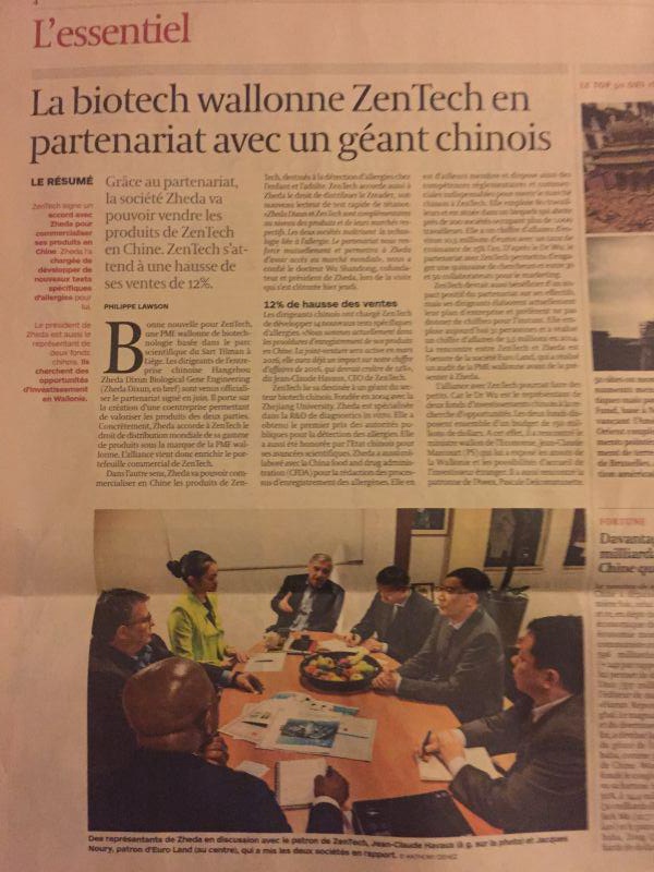 報道浙大迪迅與比利時Zentech S.A.公司合作