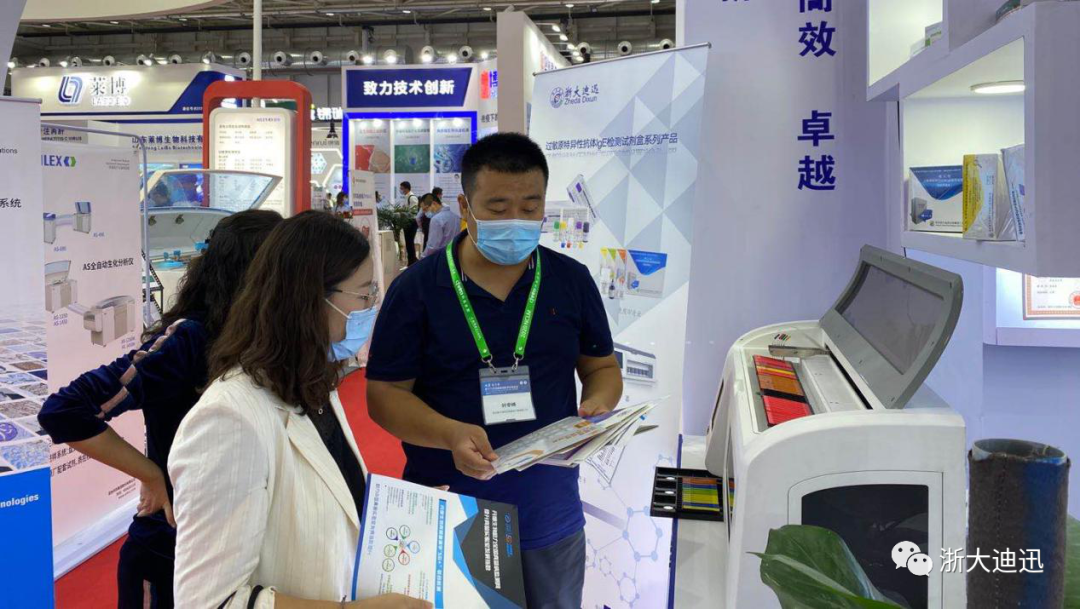 100項食物特異性抗體IgG/G4檢測試劑盒(蛋白芯片法)。會中,浙大迪迅展位現(xiàn)場熙熙攘攘,前來參觀指導(dǎo)的專家領(lǐng)導(dǎo)絡(luò)繹不絕。